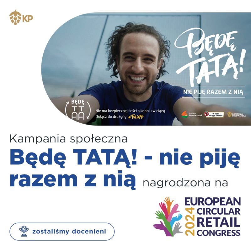 Kampania społeczna FASOFF pod hasłem „Będę TATĄ! – nie piję razem z nią”, przy której współpracowaliśmy z Fundacją Dom w Łodzi oraz Kompanią Piwowarską, otrzymała nagrodę ECU Sustainability Award podczas gali Poland & CEE Retail Summit 2024.
