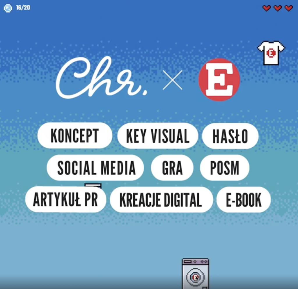 Dla marki E zostanie zorganizowana aktywacja konsumencka dla której opracujemy koncept, insight, hasło, key visual, materiały digital i POSM, a także zaprojektujemy i zaprogramujemy grę.