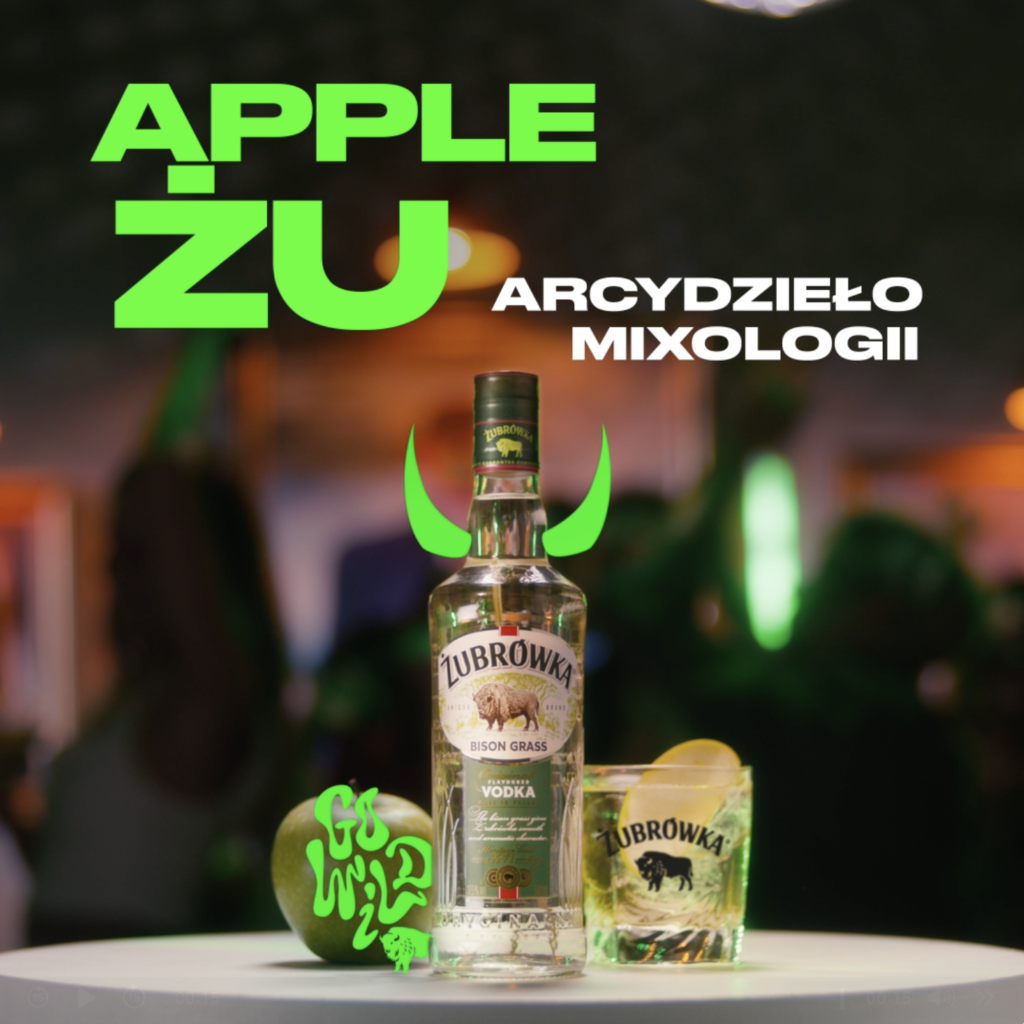 Razem z marką Żubrówką reaktywujemy w świadomości konsumentów legendarnego drinka – Apple Żu. Drink stworzony na bazie Żubrówki Bison Grass i soku jabłkowego to prawdziwe arcydzieło miksologii, które zasługuje na miejsce wśród dzieł sztuki.